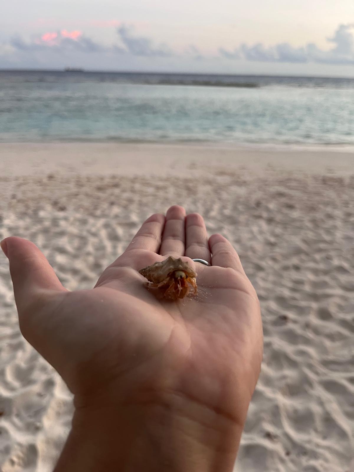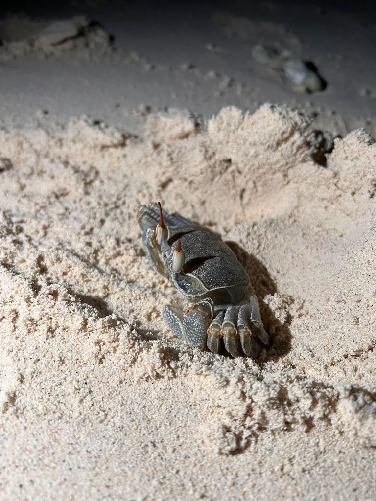 Algo que nos encantó fue un show que se da cada noche en las playas de Maldivas: cientos y cientos de cangrejos ermitaños desplazándose por la arena. También hemos visto varios cangrejos, y realmente es una experiencia muy divertida