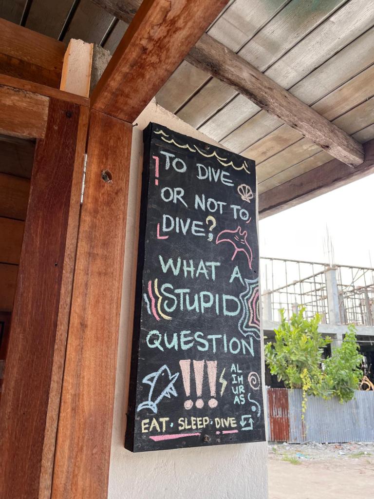 Si bien veníamos un poco indecisos con el tema del buceo, los chicos de Alihuras nos dieron un empujoncito que nos faltaba para animarnos a bucear por primera vez. Comenzamos con un video explicativo de las reglas básicas del buceo y luego comenzó la aventura. Ellos prepararon todos los equipos y nos fuimos a la lancha.