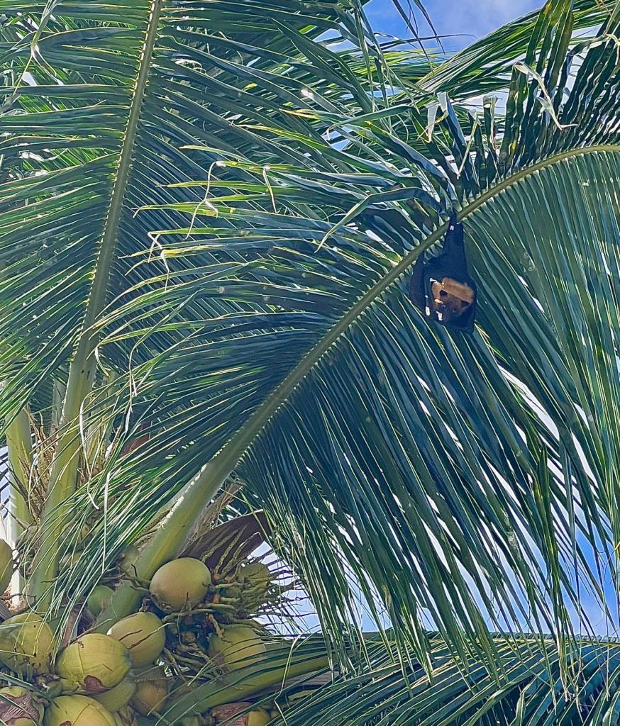 Por otro lado, a lo largo de este viaje hemos visto varios murciélagos, también conocidos como zorros voladores, principalmente en Rasdhoo. Si bien su tamaño puede ser intimidante, son frugívoros. Son animales nocturnos y durante el día permanecen colgados de los árboles.