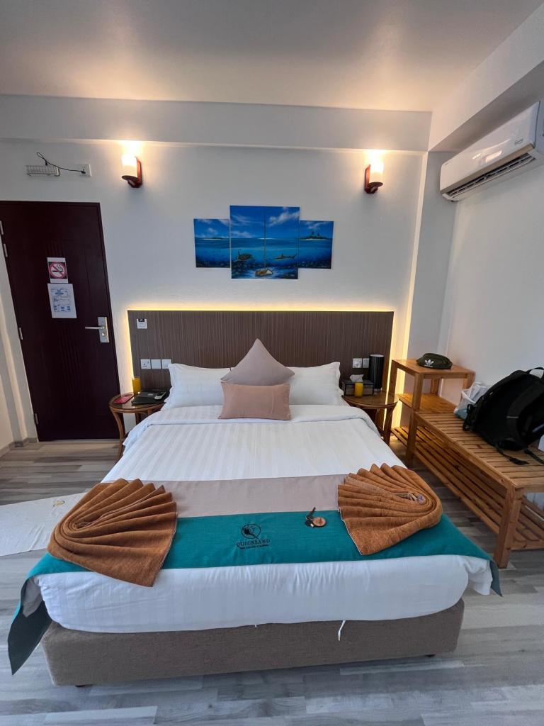 Nos alojamos en el Hotel Quicksand Rasdhoo, muy cercano a la bikini beach, donde la atención fue muy buena. En Septiembre del 2025, este hotel nos costó U$S 72 por noche, con desayuno incluido. Nos reservaron el traslado desde Malé, nos fueron a buscar al muelle y nos dieron un mini tour por la isla. La ubicación era excelente, las habitaciones eran amplias y muy cómodas pero, al igual que en el hotel anterior, el desayuno no fue bueno y le faltaba mantenimiento en las habitaciones.