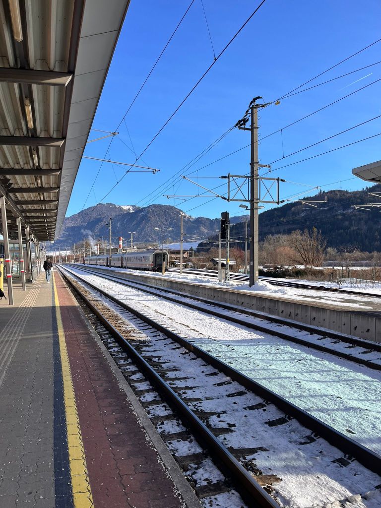 Nuestro viaje comenzó volando hasta Viena, Austria. Pasamos la primer noche allí, en un hotel muy cercano a la estación central de trenes, para poder salir bien temprano al día siguiente. (Hotel Premier Inn Wien City Hauptbahnhof, y en enero del 2025 costó €68 la noche para dos personas)